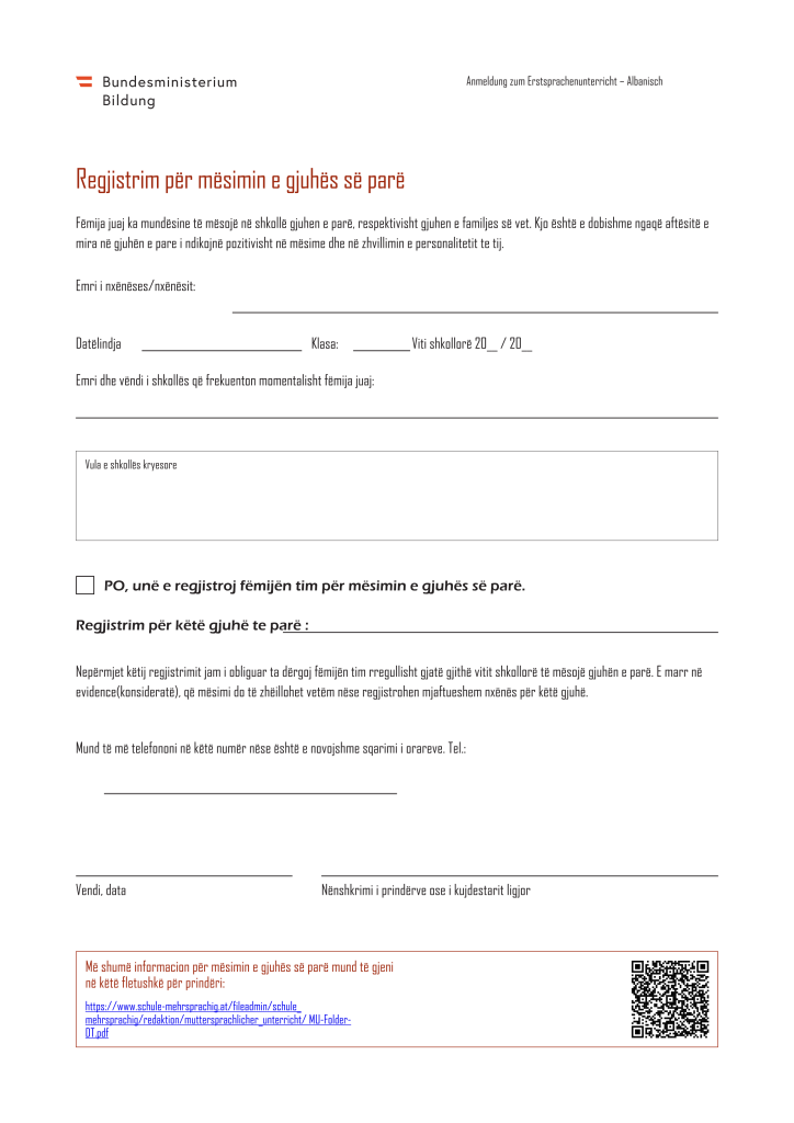 2. Dërgojani këtë informacion dhe këto formulare edhe ndonjë bashkëqytetari apo bashkëkombësi që edhe ai/ajo ta regjistrojeni fëmijën e tij/saj në gjuhën shqipe