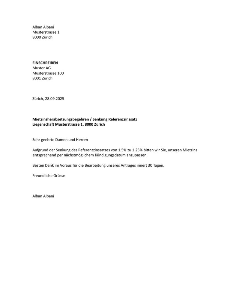 Plotësoni me të dhënat tuaja kërkesën për ulje të qirasë në gjuhën gjermane dhe dërgojeni te kompania që e administron/menaxhon objektin tuaj të qirasë.