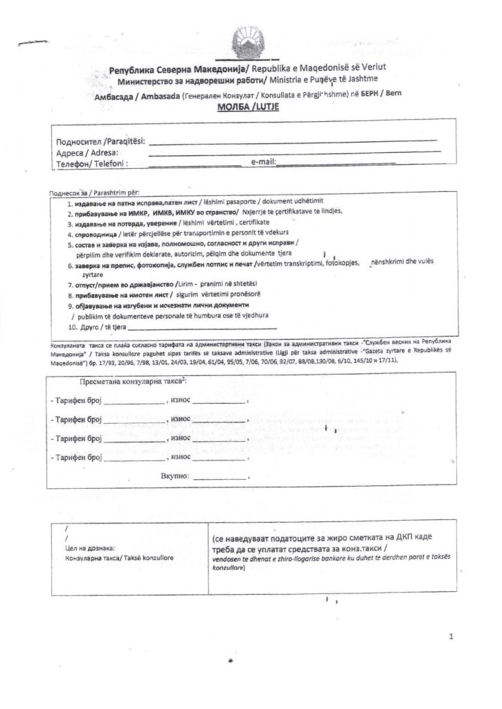• Plotësoni lutjen drejtuar Ambasadës/Konsullatës së Përgjithshme në