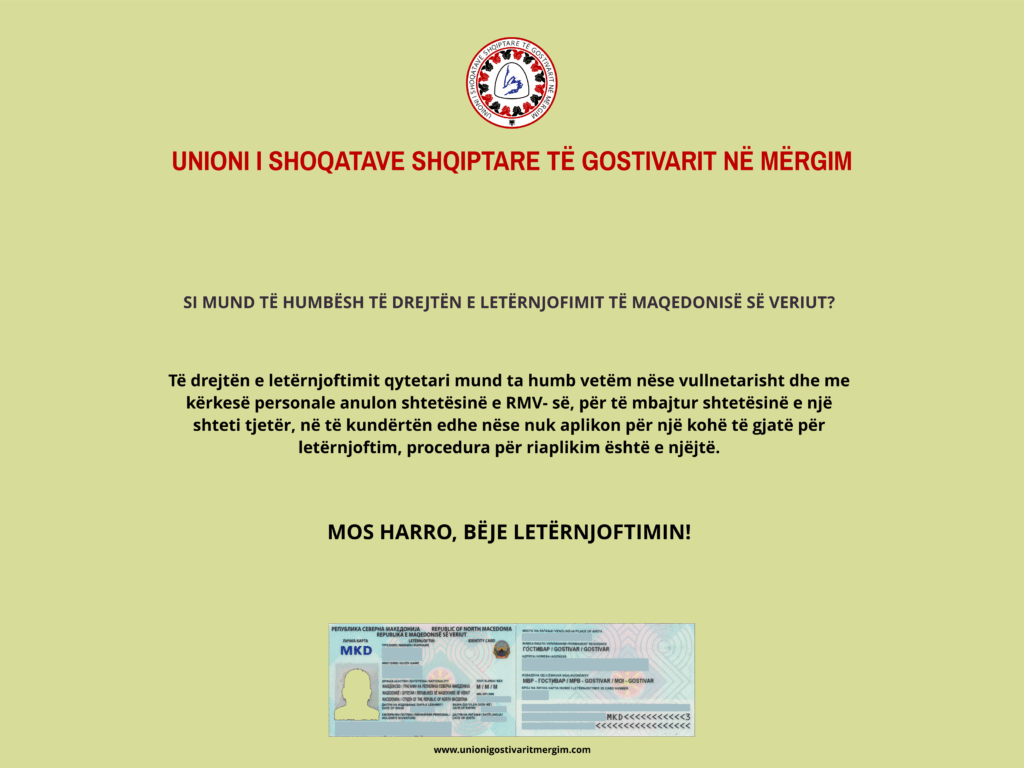 SI MUND TË HUMBËSH TË DREJTËN E LETËRNJOFIMIT TË MAQEDONISË SË VERIUT?