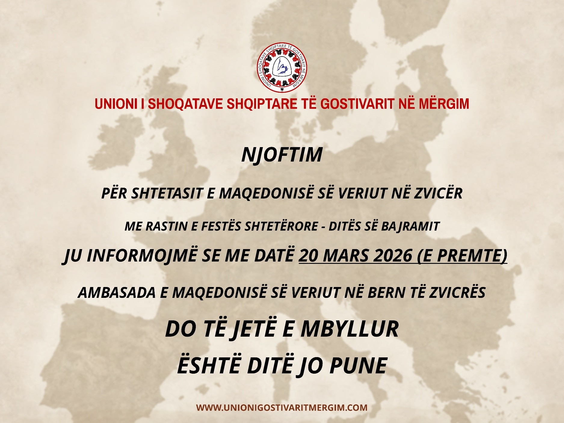 Ju informojmë se me datë 20 Mars 2026 (e Premte)