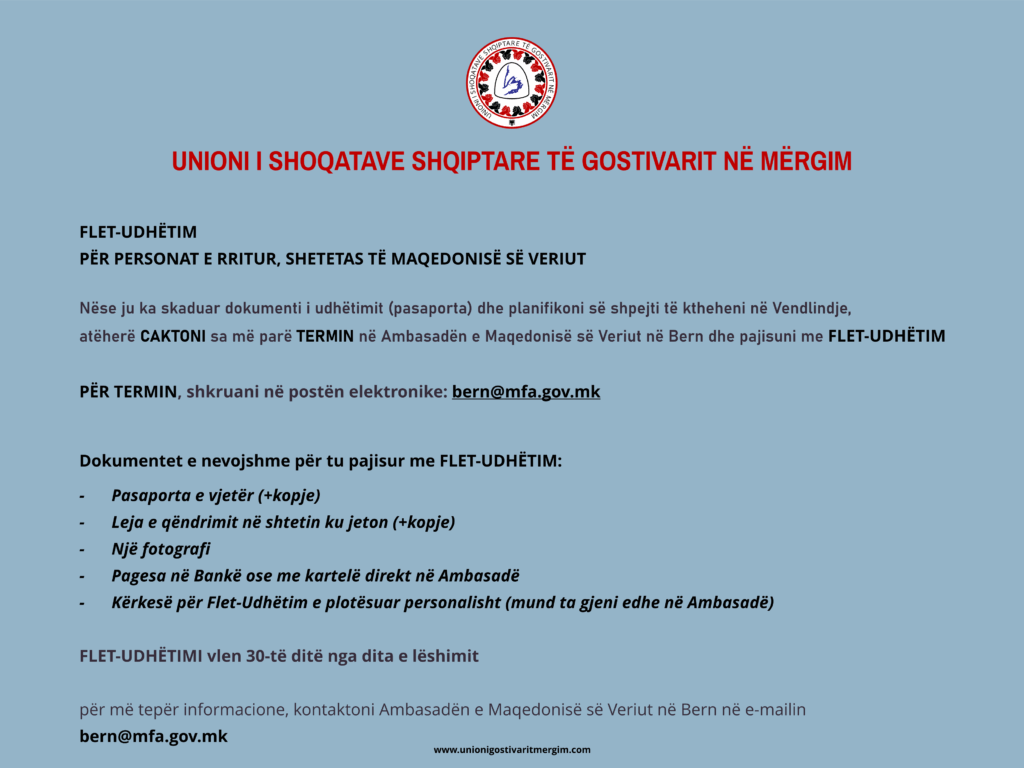 Për më tepër informacione, shërbehuni në fletushkat e përgatitura nga Unioni i Shoqatave Shqiptare të Gostivarit në Mërgim.