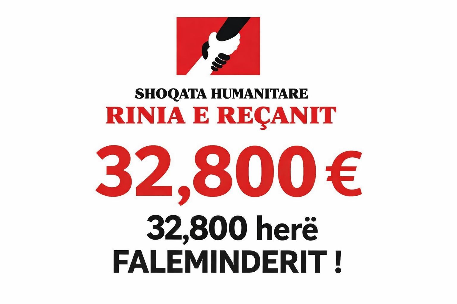 Shoqata Humanitare Rinia Reçanit të konvertuara prej frangave, dollarëve, denarëve etj. arriti të tuboj shumën prej 32,800€.
